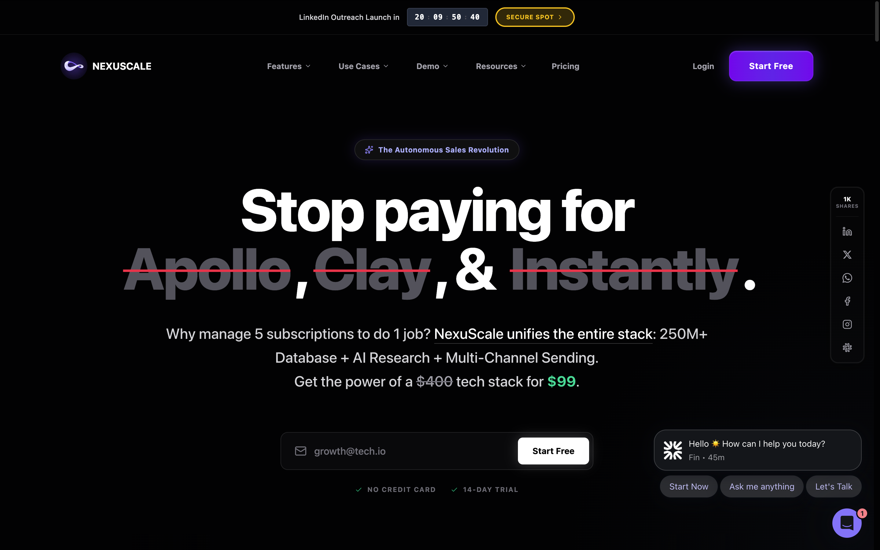1. Built nexuscale.ai from the ground up and successfully launched on AppSumo, gaining over 1,400 customers and transforming how sales teams approach outbound campaigns.